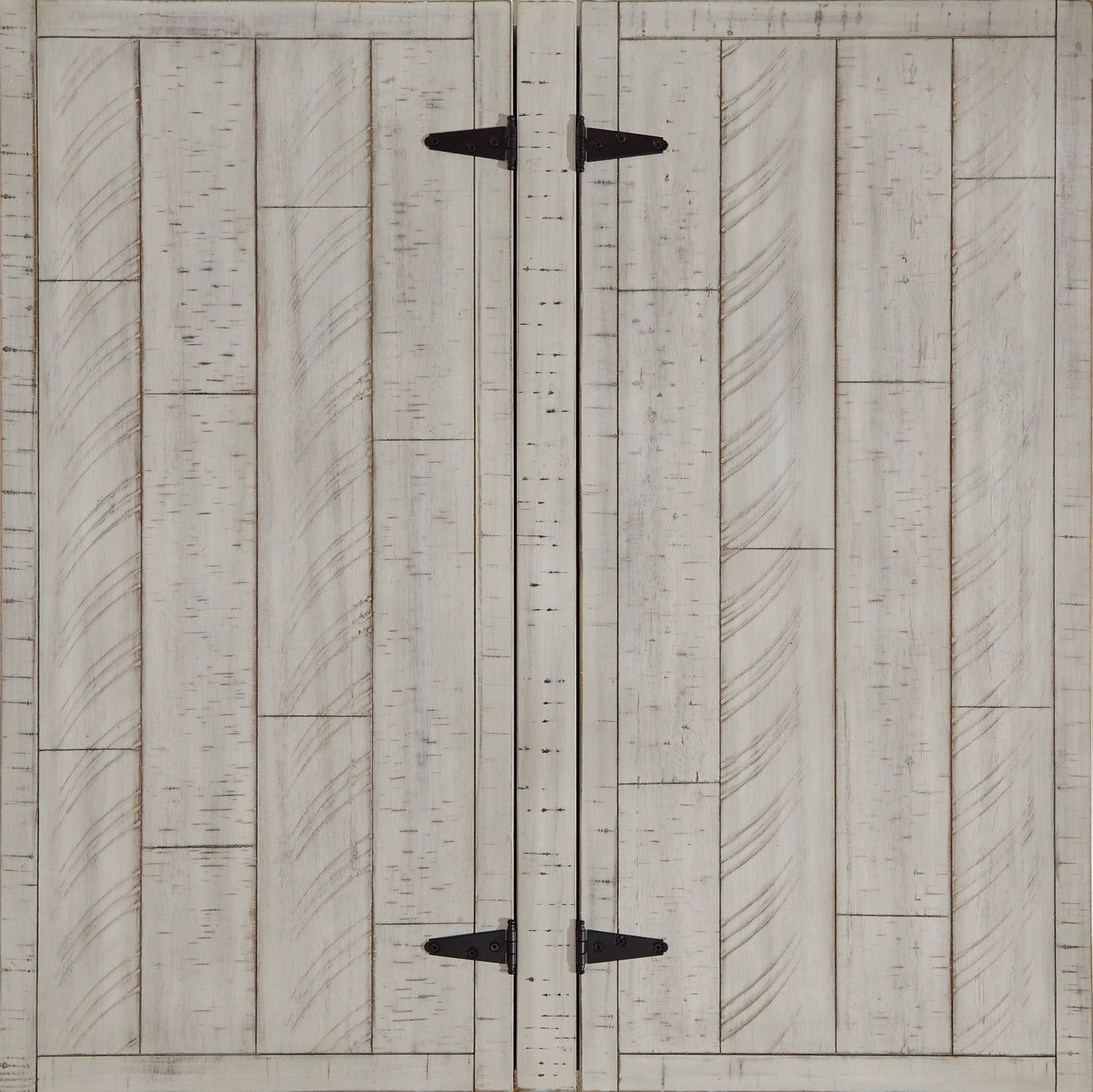| Details | Made of pine wood, acacia veneer and engineered wood, Distressed whitewash finish, Metal bracket accents, Crossbuck details, 2-sided hinged lift top (with stay arms), Assembly required | |