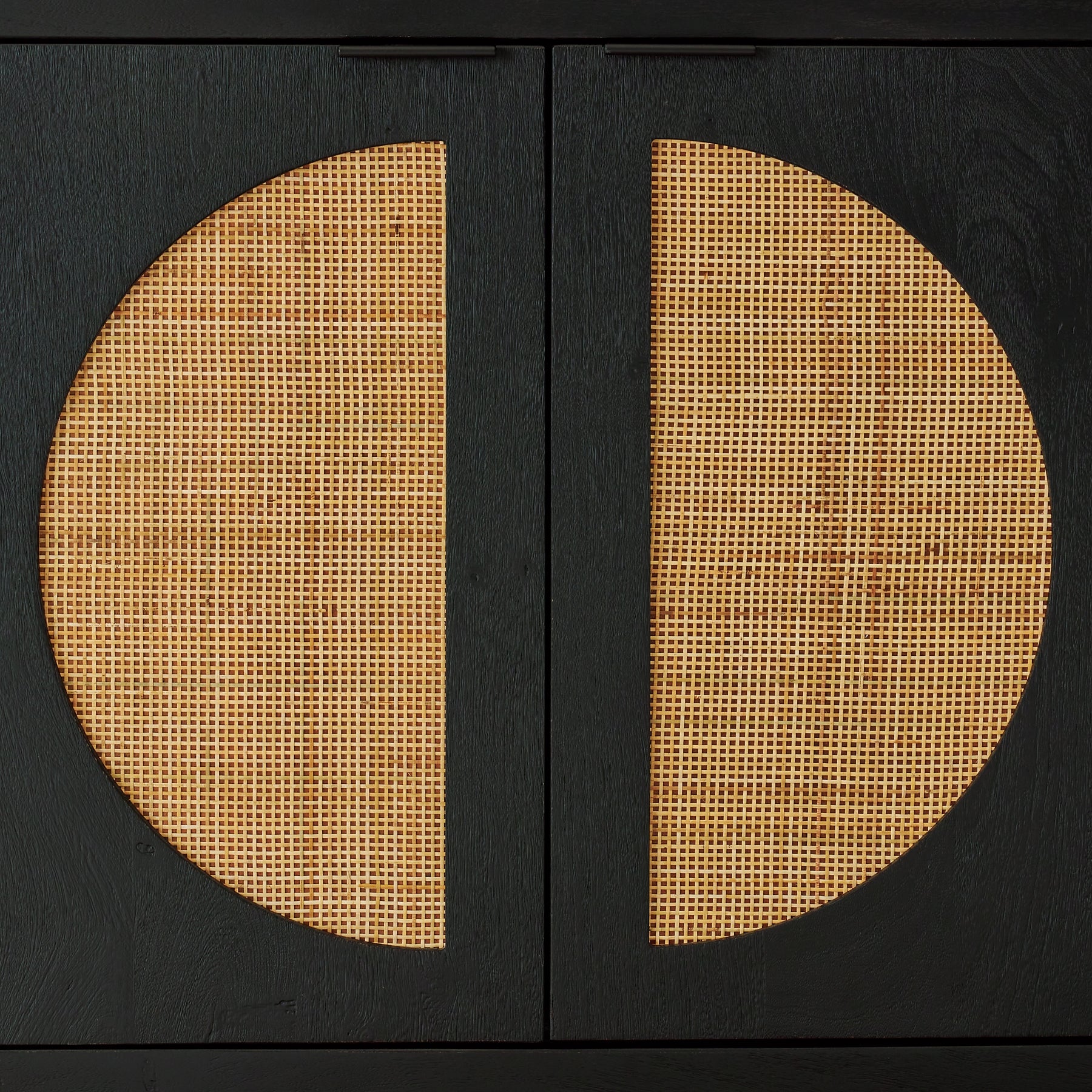 | Details | Made with wood and veneer, Black finish with light sandblasted effect, Woven cane door fronts, Metal door pulls with black finish, 4 doors with soft-close hinges, 2 shelves, Openings in back for electronics, Assembly required | |