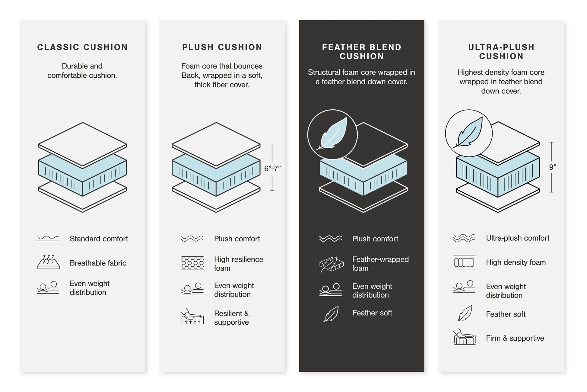 | Details | Includes 4 modular pieces: left-arm facing corner chair, armless chair, wedge and right-arm facing corner chair, "Left-arm" and "right-arm" describe the position of the arm when you face the piece, Modular pieces can float anywhere; sides are finished (with no connectors), Corner-blocked frame, Loose back cushions and attached seat cushions, Feather-fiber blend cushion, Arm bolster pillows included, 100% top grain leather covers inside areas such as the back, seat and arm cushions; skillfully matched faux leather covers the remaining areas, Due to its natural origin, real leather can show individual characteristics such as healed scars, growth marks, grain variation and shade variation, Natural variations make each hide unique and do not detract from the wearing qualities of leather, Non-skid legs, Platform foundation system resists sagging 3x better than spring system after 20,000 testing cycles by providing more even support, Smooth platform foundation maintains tight, wrinkle-free look without dips or sags that can occur over time with sinuous spring foundations | |