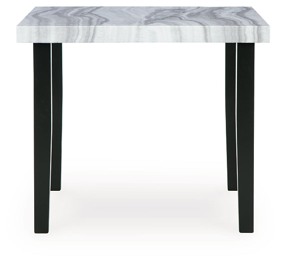 | Details | Made with solid wood legs, Two-tone finish (matte black wood grain laminate and faux gray marble laminate tabletop), Decorative laminate replicates natural or man-made material surfaces with consistent color, pattern and texture, Tapered leg design, Seats up to 4, Bar stools sold separately, Assembly required | |
