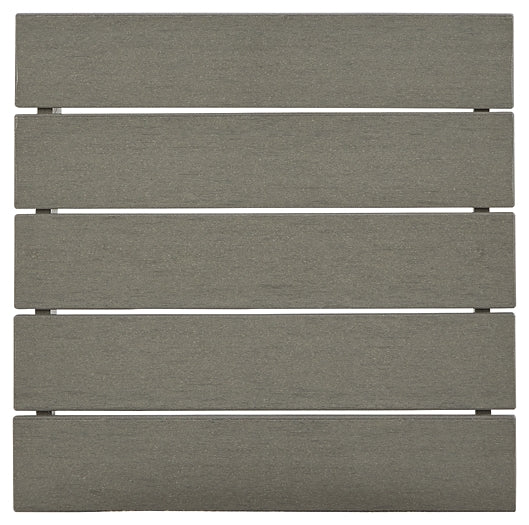 | Details | Made of HDPE material, Gray finish with textured wood look, Slatted top, Assembly required | |